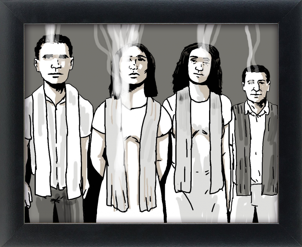 Uma vez passou um fotógrafo pela vizinhança, indo lá em casa perguntar se ela não queria tirar uma foto. Ela topou, pôs a indumentária e o fotógrafo começou a tirar várias fotos. Minha mãe já era tratada como “madrinha” por aqueles que vinham lhe pedir uma reza e por seus ajudantes. Tudo acontecia na sala em frente, em um altar cheio de quadros e estátuas de santos brancos. Apenas o Preto Velho e a padroeira do Brasil, como negros. Havia Yemanjá, mas era a pintura de uma mulher branca, mesmo que se saiba que essas entidades são de origens negras. Como na justiça nacional, tínhamos uma representatividade mínima dos Black Brothers naquele altar. Uma representação perfeita da distribuição de poder na sociedade brasileira.