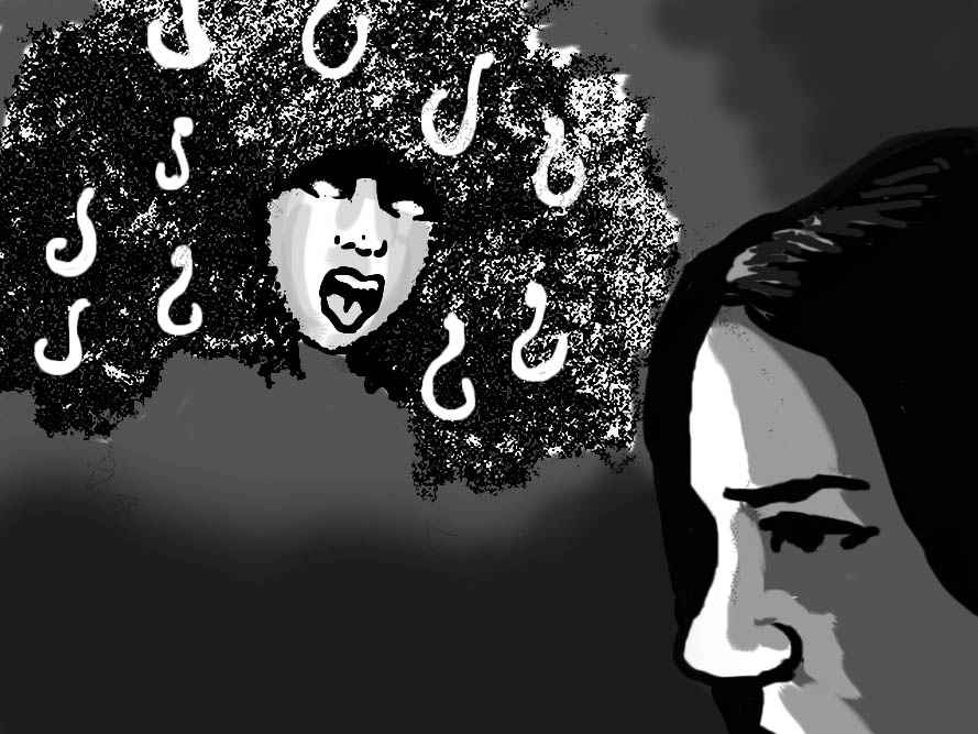 Aquela mulher, quando viva, tinha muito cabelo mesmo. Mas era escorrido e não black power. Ela era mestiça, baixa e de porte magro. Talvez por isso que nós crescemos e ela nunca permitiu que usássemos os cabelos ao estilo dos garotos do Jackson 5. Os primos todos tinham as cabeleiras iguais a do Tony Tornado, mas nós sempre ficávamos com os cortes mais “conservadores”. Só depois dos dezoito anos começamos a usar, sobre intenso bombardeio dela. Claro, era ela mesma quem cortava nossos cabelos no estilo lata de sardinha… Como se pusesse uma lata de sardinha vazia e virada para baixo em cima de nossas cabeças, raspando tudo que estivesse fora do perímetro. Depois, só aparava o que ficara dentro da lata. Aquilo deixava os negros grilados, não tinha jeito. Se desobedecêssemos, teríamos que dar uma volta no quarteirão com o corte. Mas a negrada queria ser estilosa. Sabe como é, né?