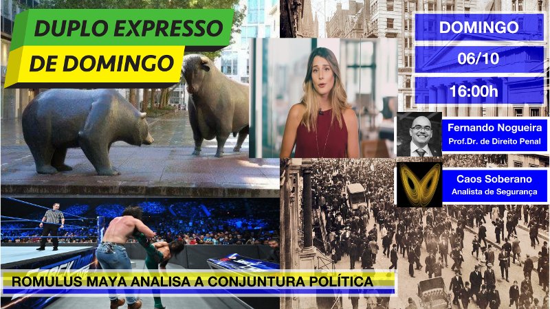 Duplo Expresso de Domingo, com Romulus Maya, o penalista Fernando Nogueira e o especialista em segurança e tecnologia “Caos Soberano”. Em time que está perdendo se mexe!