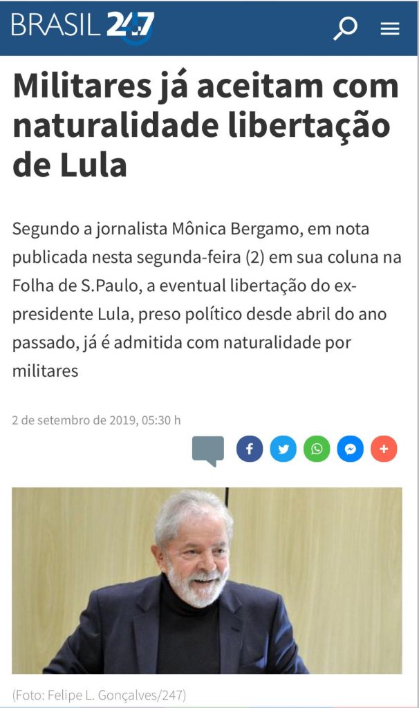 A ordem é @ggreenwald cantar vitória e tentar capitalizar. Isso quando soltura de @LulaOficial – possivelmente no esquema bate e volta – foi determinada por Generais e Lava Jato. Alô, @czmartins @ValeskaZanin! Alertem Lula do risco de parar em quartel ou presídio federal! https://t.co/kkEJRtO4bF pic.twitter.com/F7IHg3HiAT