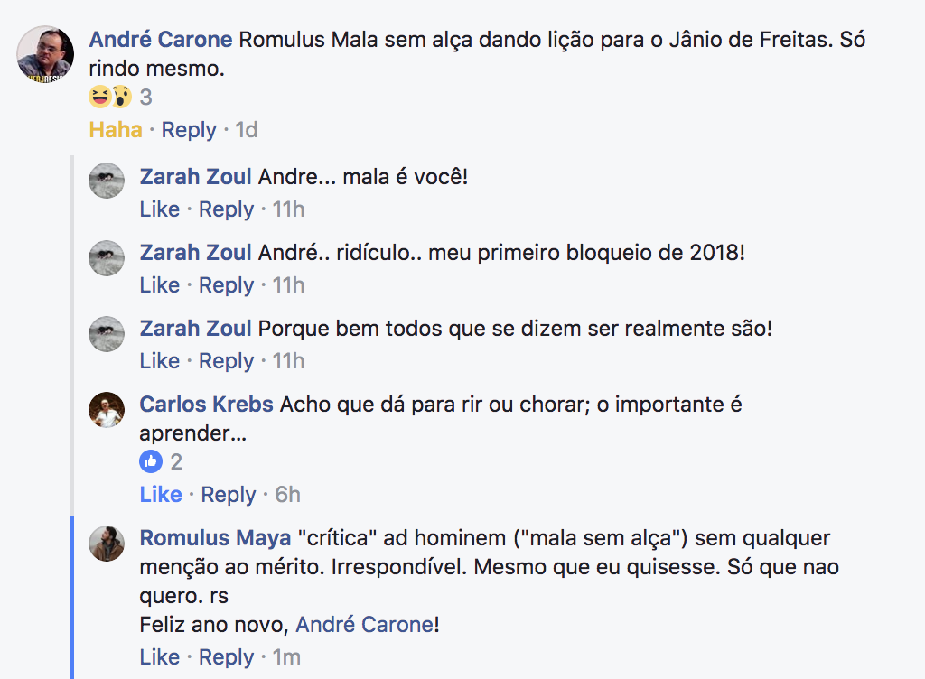 Não somos amigos virtuais, e você responde a um comentário de duas linhas com