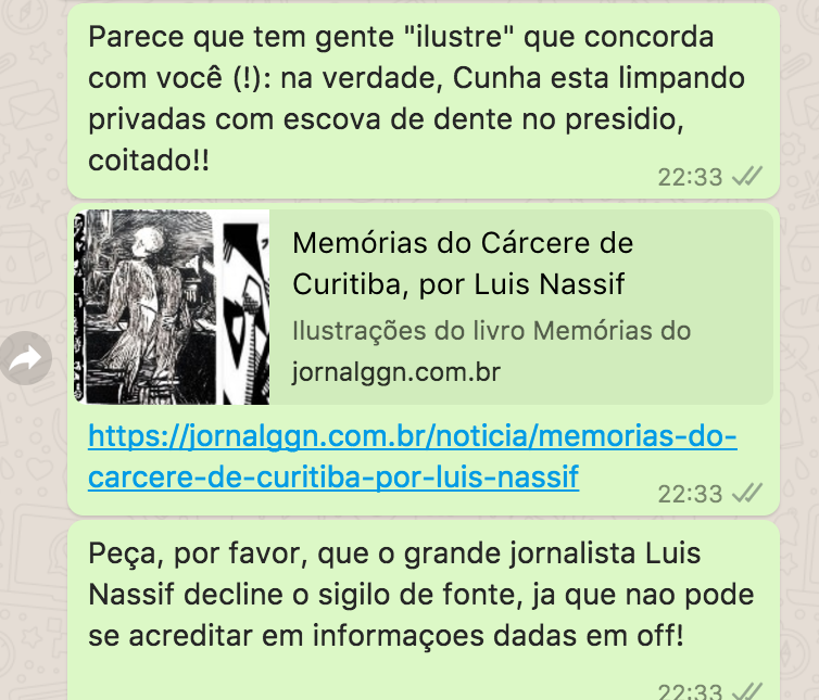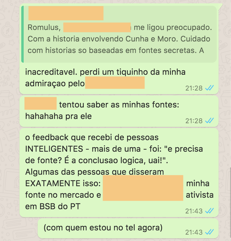 conversas com Cunha, ele tratava delatores como escória da humanidade.