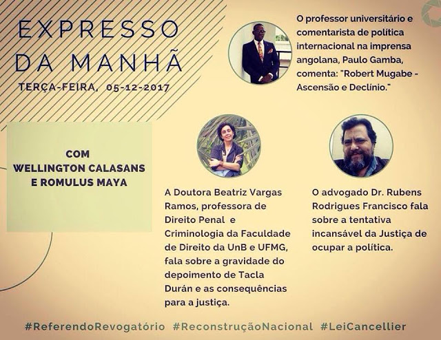 Análise política assumidamente e orgulhosamente engajada: não nos limitamos à narração, distanciada, da… tragédia! Pelo contrário: dedicamo-nos, abertamente, a combatê-la com todos os meios de que dispomos. Importante: não somos assessoria de imprensa nem de candidatos, nem de partidos. Ativismo 100% independente: acima das conveniências individuais desses, resta o compromisso inarredável com o Brasil e a luta dos brasileiros. Dentre os quais privilegiamos, é certo, os pobres. Site tocado por Romulus Maya, advogado internacionalista e blogueiro radicado na Suíça e equipe de voluntários de alta competência – toda ela empregada na luta, de todos nós, contra o ataque híbrido de que o Brasil é alvo.