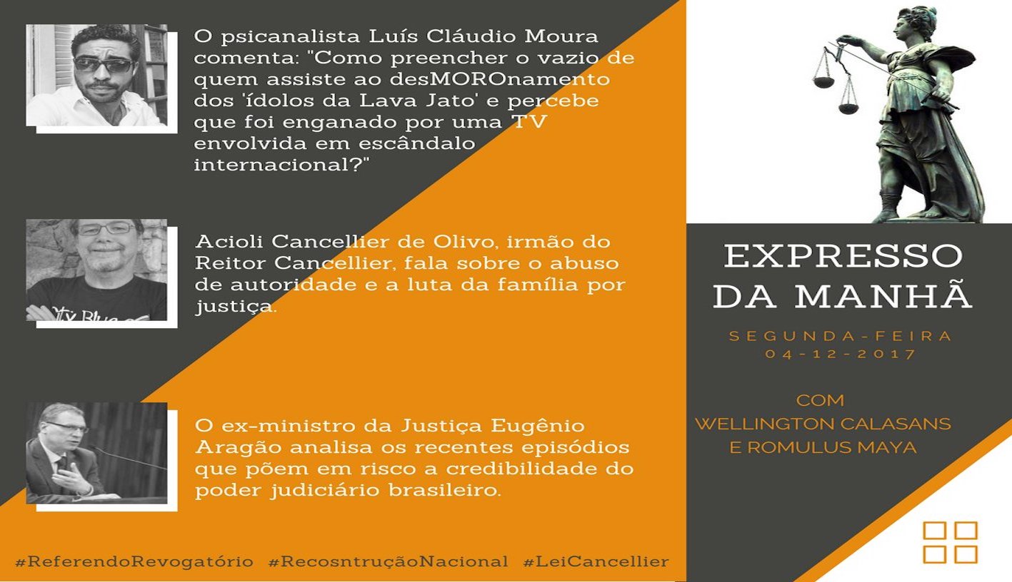 – O psicanalista Luís Cláudio Moura comenta: “Como preencher o vazio de quem assiste ao desMOROnamento dos ‘ídolos da Lava Jato’ e percebe que foi enganado por uma TV envolvida em escândalo internacional?”