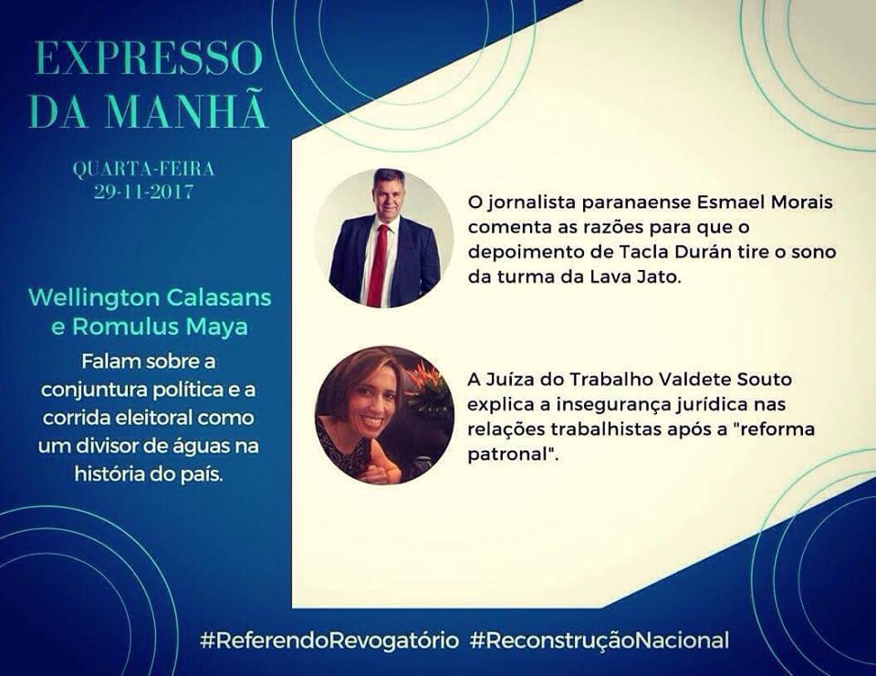 #TaclaFuraBolha: “intestinos soltos” lá em Curitiba; mais “DE-forma trabalhista” – EXPRESSO DA MANHÃ: https://t.co/tIDjeqP4o6 via— rommulus_ (@rommulus_) November 29, 2017