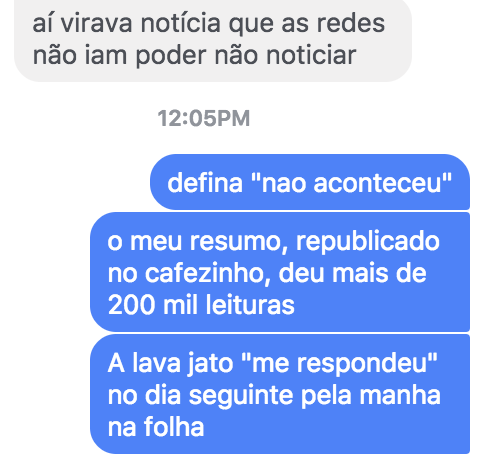 – Em vez de ajudar a viralizar (mais ainda…) o resumo mastigado + análise que fiz no meu Blog, ou o furo do Miguel do Rosário com o áudio vazado,