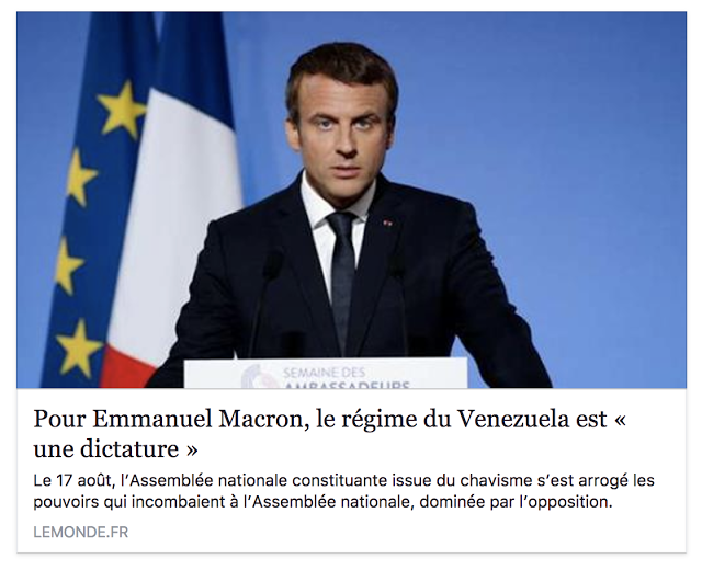 Emmanuel Macron, Presidente da França, não poderia estar c*g*ndo mais para o tal “sofrimento do povo venezuelano”…