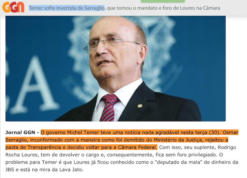 P.S.: quem acredita nessa (auto!) “narrativa” de “Serraglio retaliando Temer (!) por ficar insatisfeito (!!) com mudar de Ministério (!!!)” acredita em…
