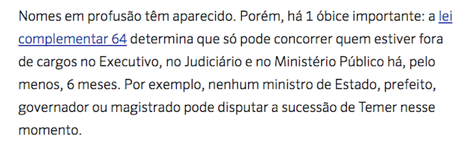 Ciro: É isso que está argumentado na ADI 5.525. Essa lei é o código eleitoral. E isso vale para todas as eleições de governador e prefeito. O problema é que a constituição é clara ao dizer que em caso de vacância de ambas – presidência e vice-presidência – a substituição é por eleição ~indireta~ se na segunda metade do mandato.