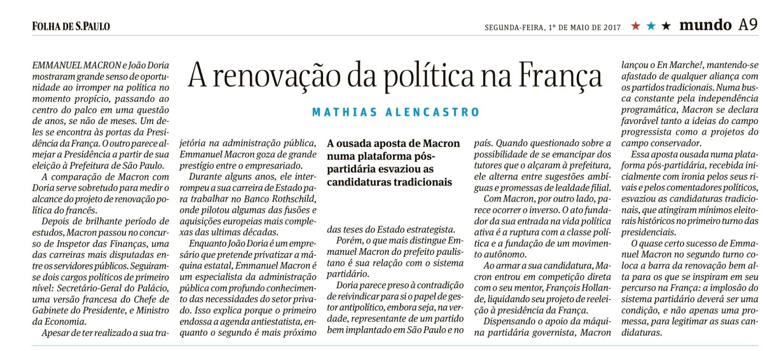 Já outros veem Macron como um modelo válido para… Doria.
