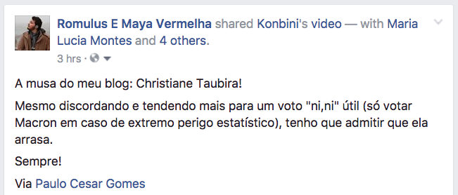 – Assim, como Marine Le Pen e Fillon eram “insuportáveis” para os mais à esquerda, e Melénchon e Hamon eram “insuportáveis” para os mais à direita, partes significativas dos dois eleitorados aceitam – com a ajuda providencial da mídia! – votar, “de nariz tapado”, em um que, se não agrada a nenhum deles, ao menos não lhes é “insuportável”.