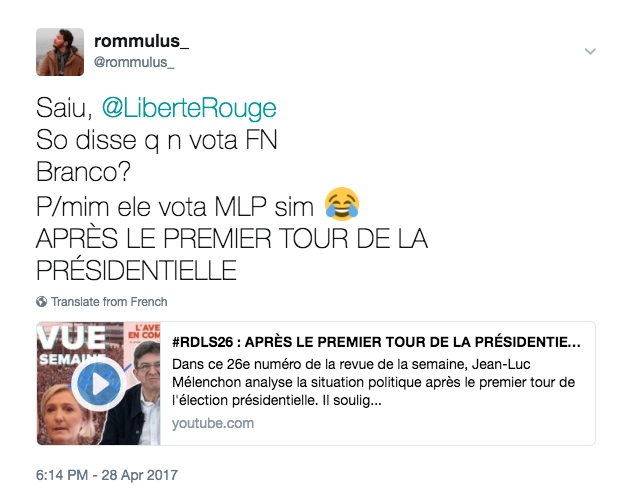 Olha a tal da “posição política delicadíssima do Melénchon” aí…