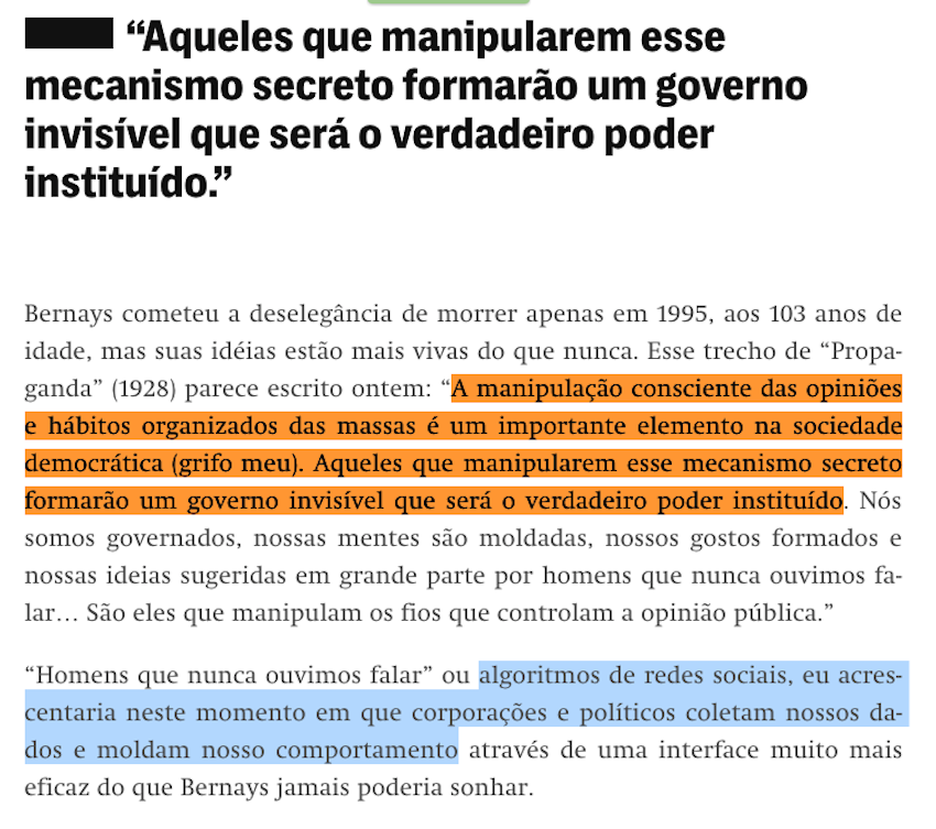 A grande mídia tem que entender que ela consegue sim ainda ~começar~ ou ~impulsionar~ ondas de opinião…