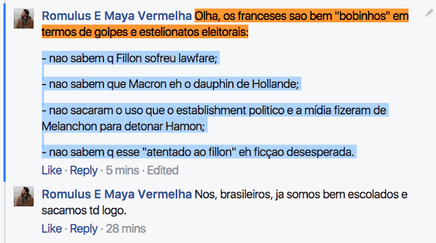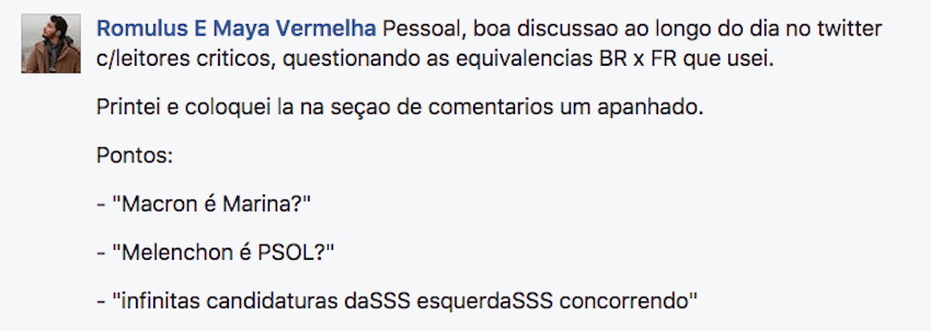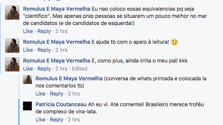 Outras reações: – “Ei, as suas comparações com políticos brasileiros são impróprias!”