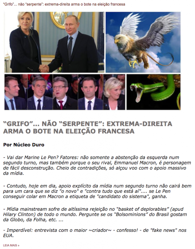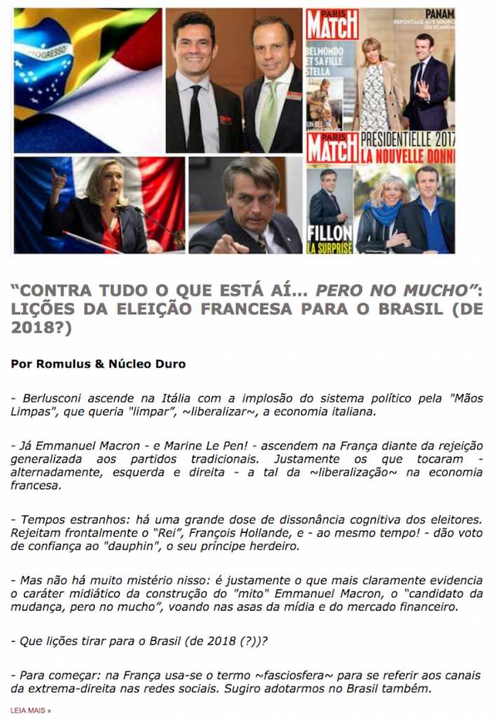 – Na França – como no Brasil – um alerta para a grande mídia, diante da sua insistência em brincar de feiticeiro nos complicados cenários político-eleitorais atuais.