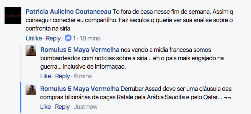 João Antônio: Essa parceria não é real. E se fosse, o serviço secreto estaria trabalhando pra inviabilizar, então tanto faz. A história do uso de armas químicas é mais uma armação americana e isso já é bem claro.