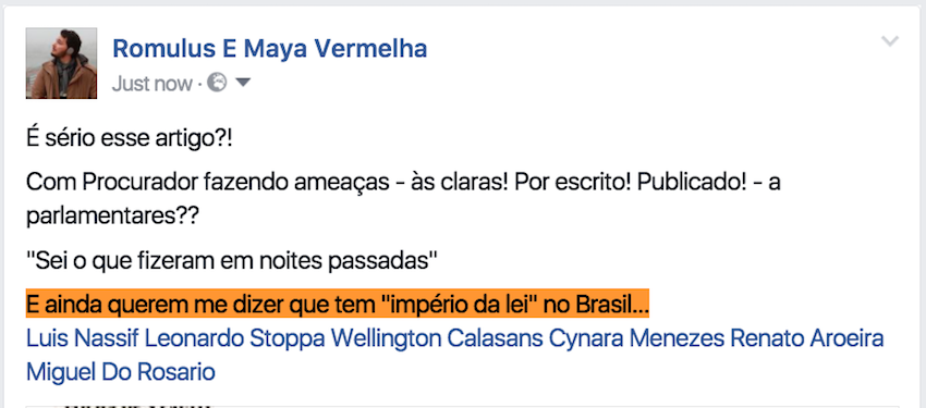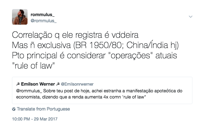 Daniel Rodrigues: Exatamente isso, Romulus. Como diria Luhmann, o direito é autopoiético e possui um âmbito de autonomia. Existem muitas evidências e indícios de desvios constitucionais e jurídicos nessas operações, ou seja, de deformação do “rule of law”. É temerário afirmar q o “law enforcement”, quando a lei e a autoridades são arbitrárias e ilegítimas, causa desenvolvimento econômico. Duvido que isso ocorra. Amartya Sen tem bons argumentos nesse sentido.