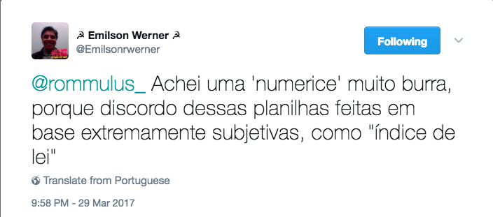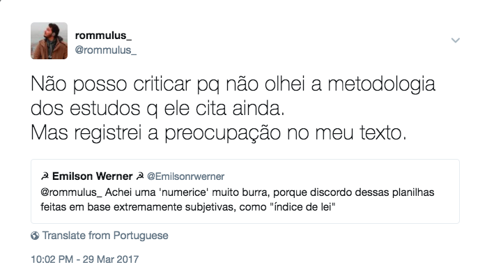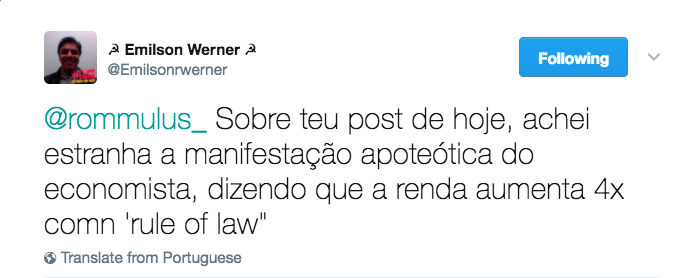 – Teríamos de olhar detidamente a metodologia desses estudos… e quais os proxies utilizados como marcadores de “império da lei” nos artigos indicados.