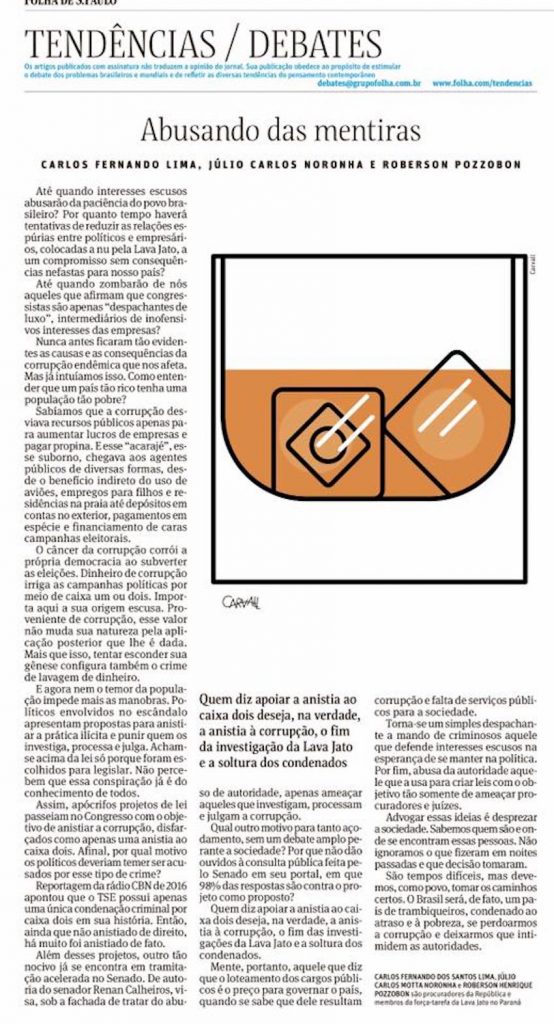 Bruno Silva: “Nos últimos dias diversos textos criticaram o grande dano econômico que as operações de investigação sobre empresas estão causando” – Thomas, você tem uma ou duas referências mais representativas desse todo de textos?