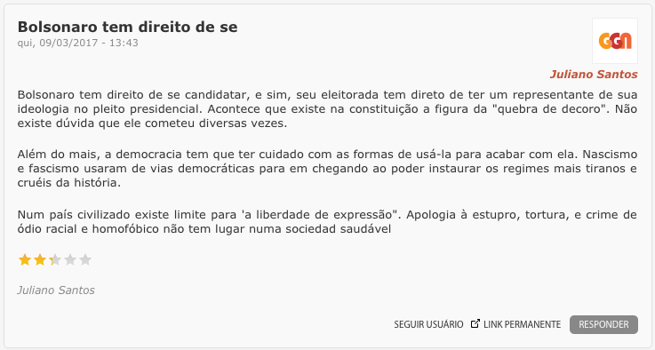Li outro dia que “pós-verdade = mentira + preconceito”. E o que não falta aqui é racismo e machismo pra justificar feminicídio, homofobia, ataque a candomblés etc.