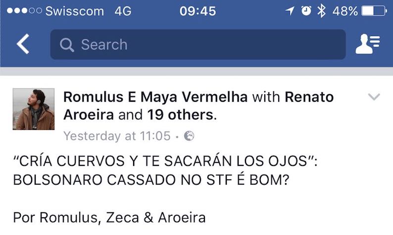 … e, “casualmente”, agora esse mesmo Judiciário, com base num dossiê vazado para um jornal, torna réu o candidato do partido rival (direita)… e em tempo recorde!
