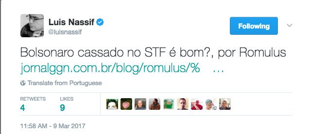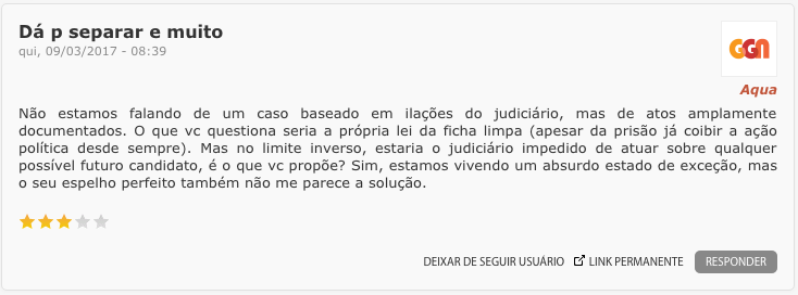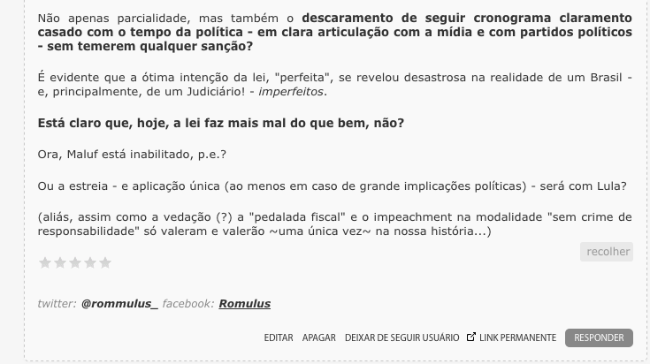 – Ou ao mesmo grupo político-midiático-institucional que – olha a digital! – busca impedir a candidatura de Lula pelo mesmo método?