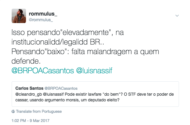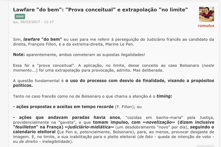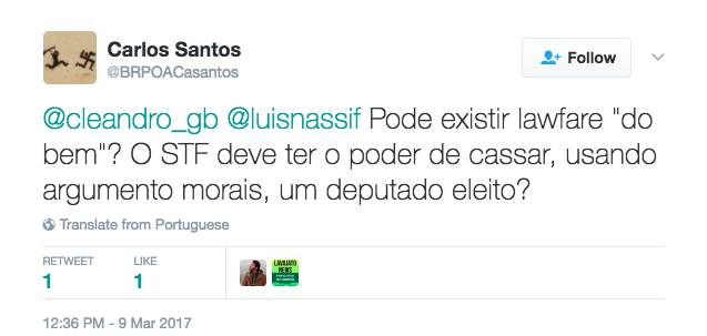 Ou seja: como adiantado nos tuítes acima, não existe lawfare “do bem”.