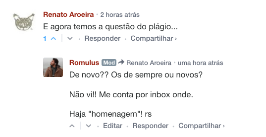 – Aqui da seção de comentários do post: