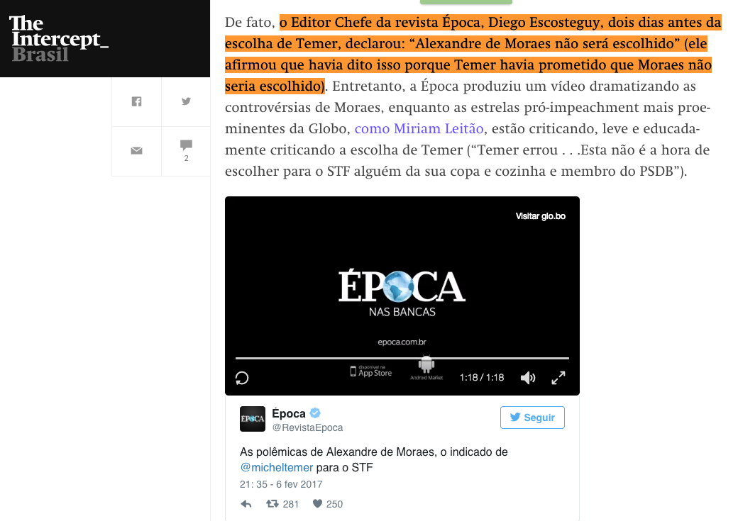 <<A Globo, que não é boba, era contra o Moraes no STF!>>