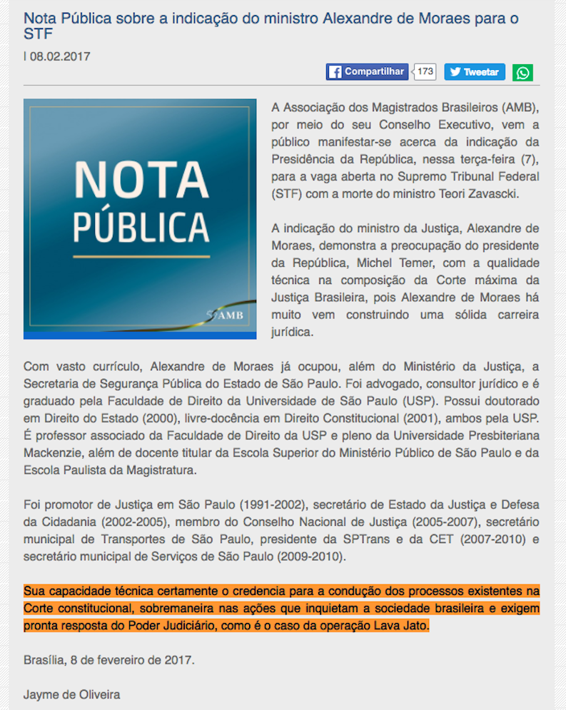 – Tem coisa melhor pra ajudar no reforço da narrativa de parcialidade e de falência da Justiça brasileira do que colocar Moraes no STF??