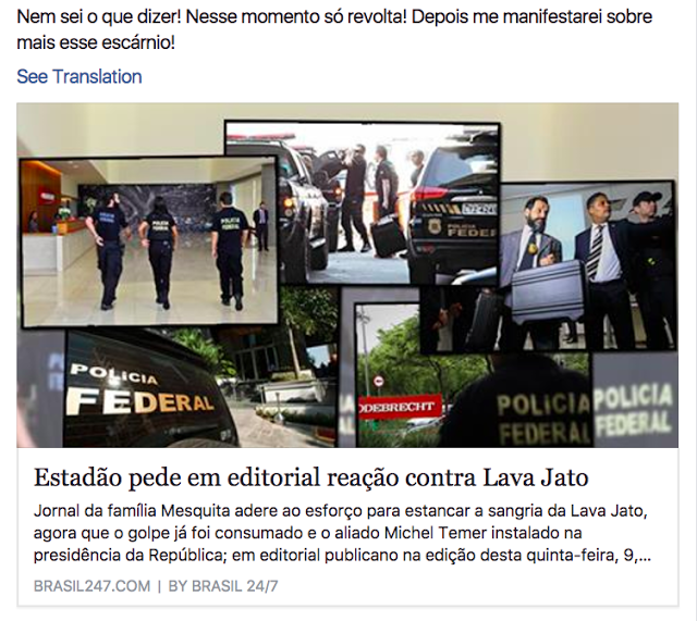 Notem: como registrei anteriormente (“Veja como ‘Curitiba boys’ tomaram drible da vaca das raposas no Congresso nas ’10 medidas’” – 30/11/16), ele realmente (!) acredita na chama purificadora da Lava Jato! (rs)
