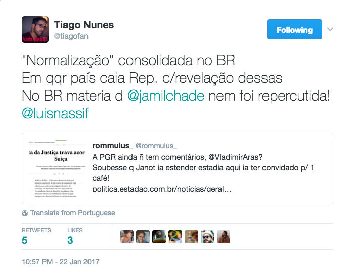 <<Por falar em (1) Jamil Chade, (2) cinismo e (3) vergonha internacional…>>