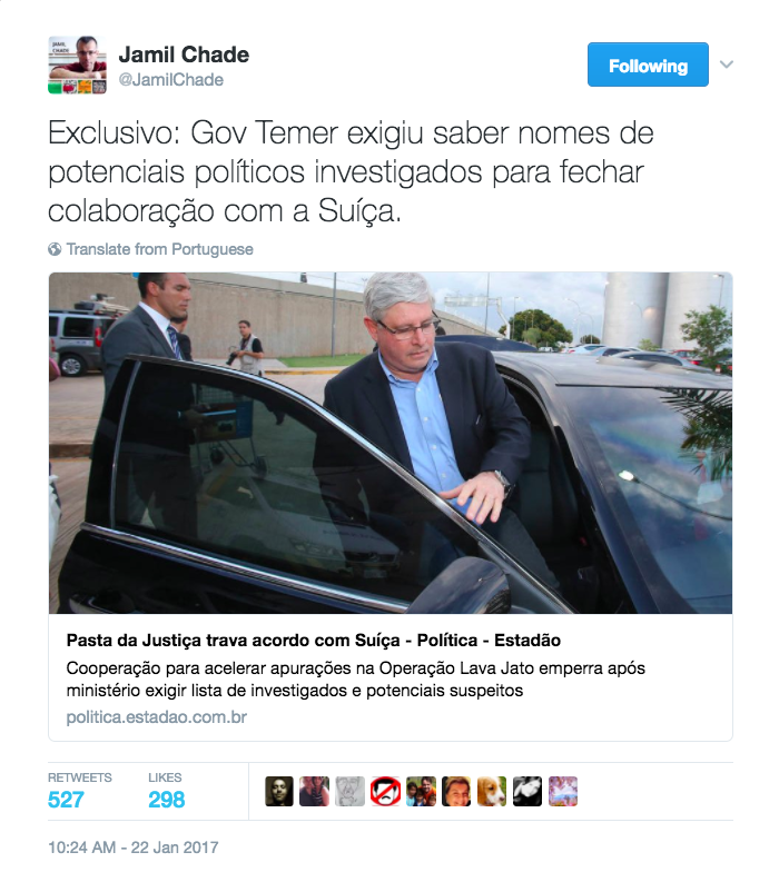 Acabo de ter uma conversa com um político suíço que, sem entender nada do que ocorria, me ligou para “tirar umas dúvidas” sobre o que ele tem lido no noticiário sobre o Brasil.