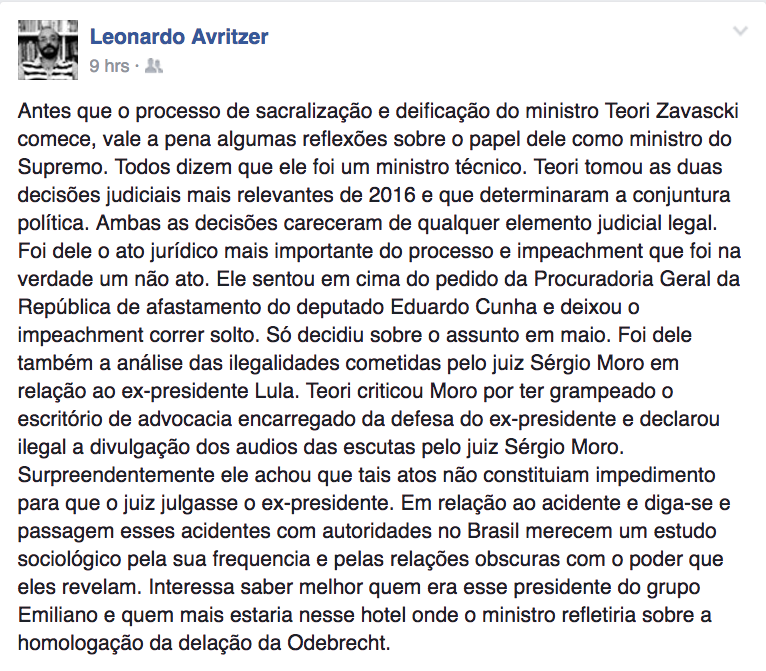 Teori Zavascki: porque quem morre ~ não ~ vira santo