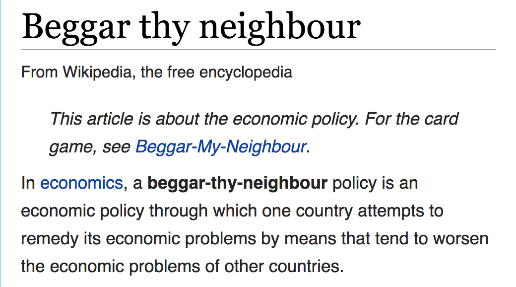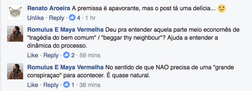 Lembrando conceitos da economia, essa dinâmica lembra mais a “tragédia do bem comum” e a “beggar thy neighbour policy“: