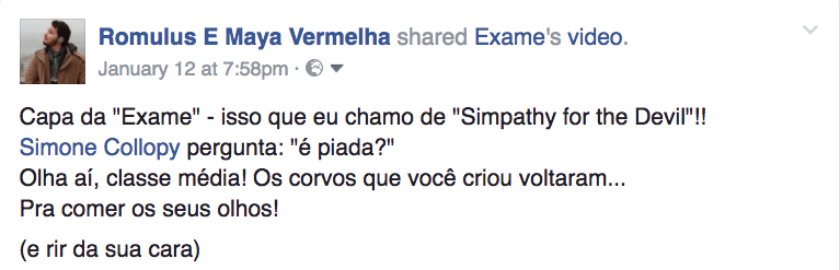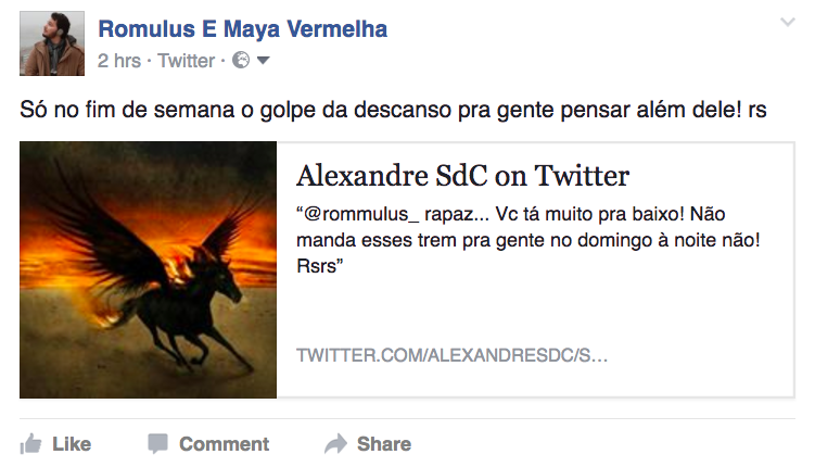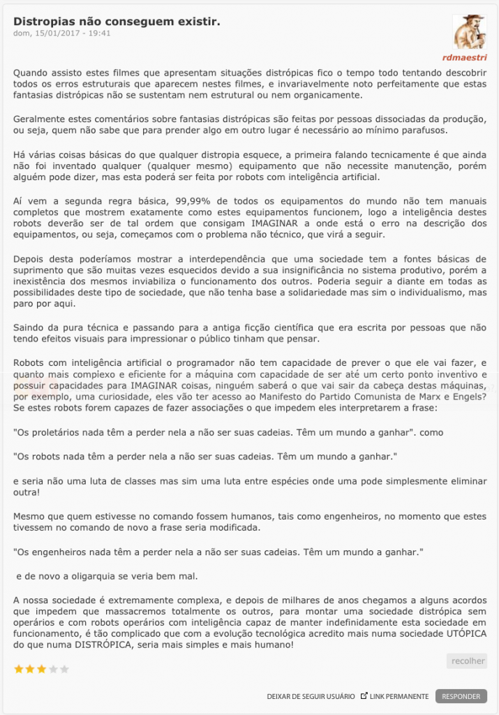 Maria – O science fiction não era pra dizer que não é verdade ou que não seja ameaçador. É só porque eu prefiro trabalhar pra ajudar a derrubar a cultura do ódio e o terror do governo golpista no tempo mais curto possível (nem sei se estarei viva até lá).