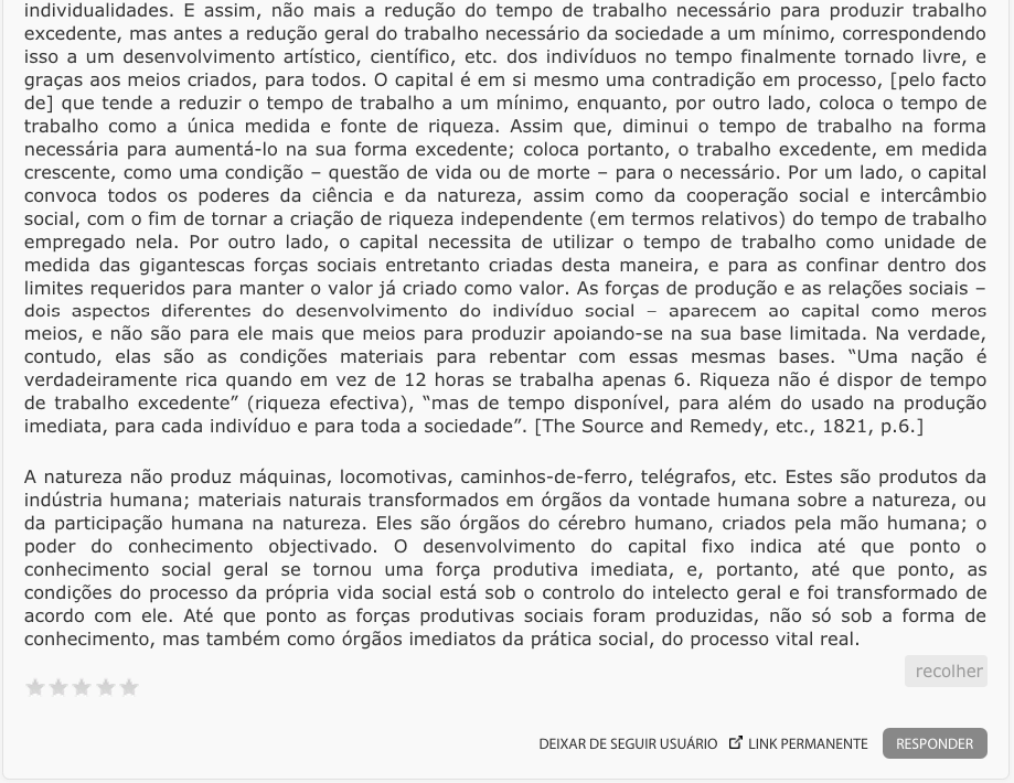 Vendo interpretações equivocadas e extrapolações desautorizadas pelo texto original, impossível não lembrar do (golpista!) Delfim Netto: “quem mais mal fez ao marxismo foram os marxistas!” (e não a direita).