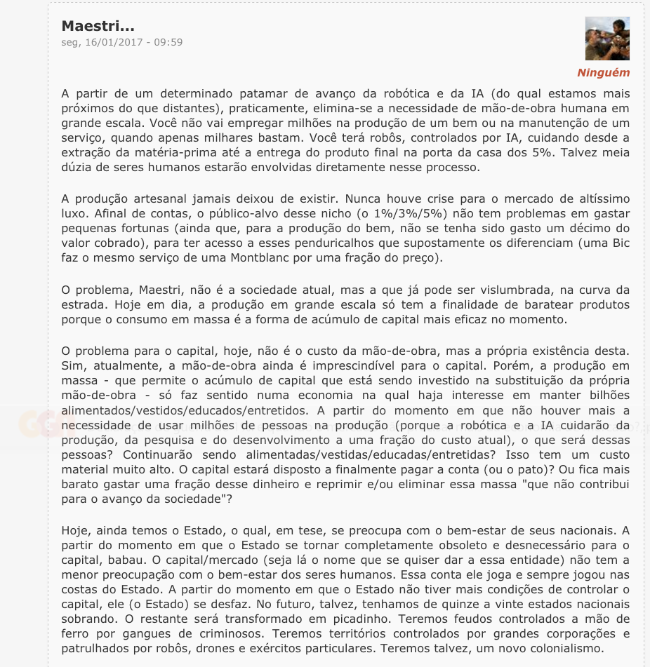 – Ainda no GGN: “Os marxista pira” na superação da mais valia… – mas o próprio Marx ~ não ~ pirou não… ele a previu, ora!