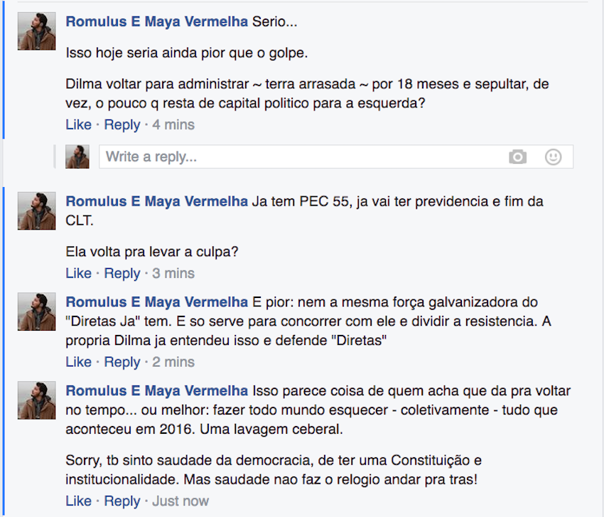 Admiro os participantes do evento. Conheci Rui Costa Pimenta melhor vendo suas certeiras análises políticas durante o processo de “golpeachment”.