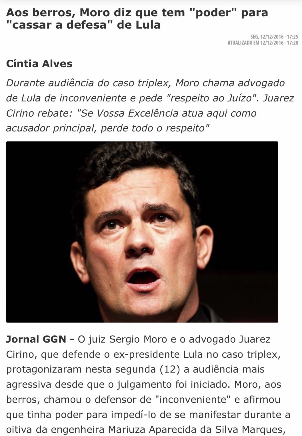 <<Na verdade, Moro tem até um incentivo em levar a nulidades e terminar com Lula solto.