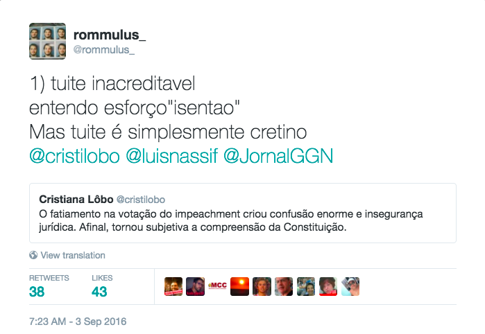 Já no dia 4/10, eu e minha parceira, Giselle Mathias (e outros), bradávamos: