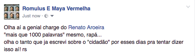 “Veja você, Renata, que os políticos (esses imundos!) tentaram dar um ‘cavalo de pau’ nas (alvas!) ‘10 medidas contra a corrupção’! Para permitir uma anistia (!) ao ‘caixa 2’!!”