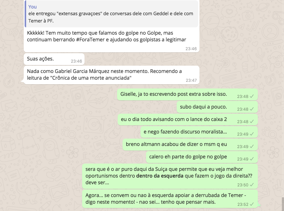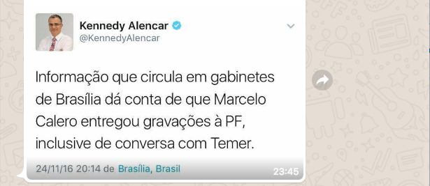Quando eis que outro membro do grupo chega com mais detalhes da “bomba“, que acabavam de ser dados por Kennedy Alencar no Twitter: