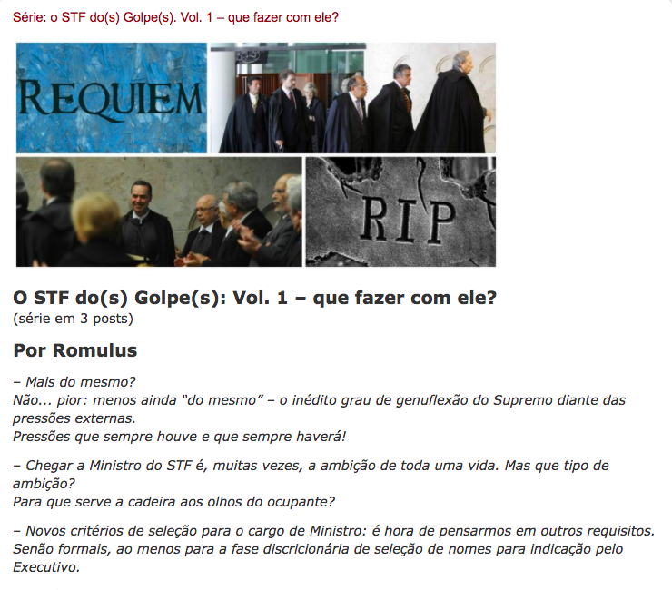Sobre Gilmar, Lewandowski e os seus pares no STF, não deixem de ler a trilogia (com direito a bônus!):
