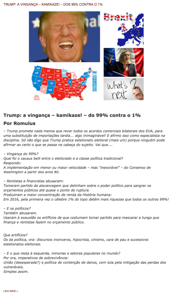 outras dedicadas ao mesmo cataclismo Trump e demais assemelhados mundo afora, e