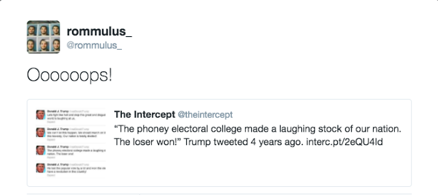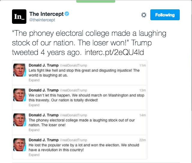 Sobre a irresignação da parte perdedora com o resultado de eleição polarizada / radicalizada / acirrada /sem “Centro” político, que comentávamos na semana passada, parece que Trump tinha algo a dizer sobre o tema, ainda em 2012: