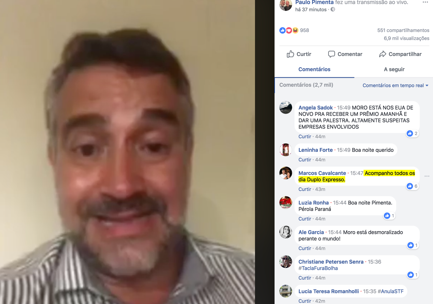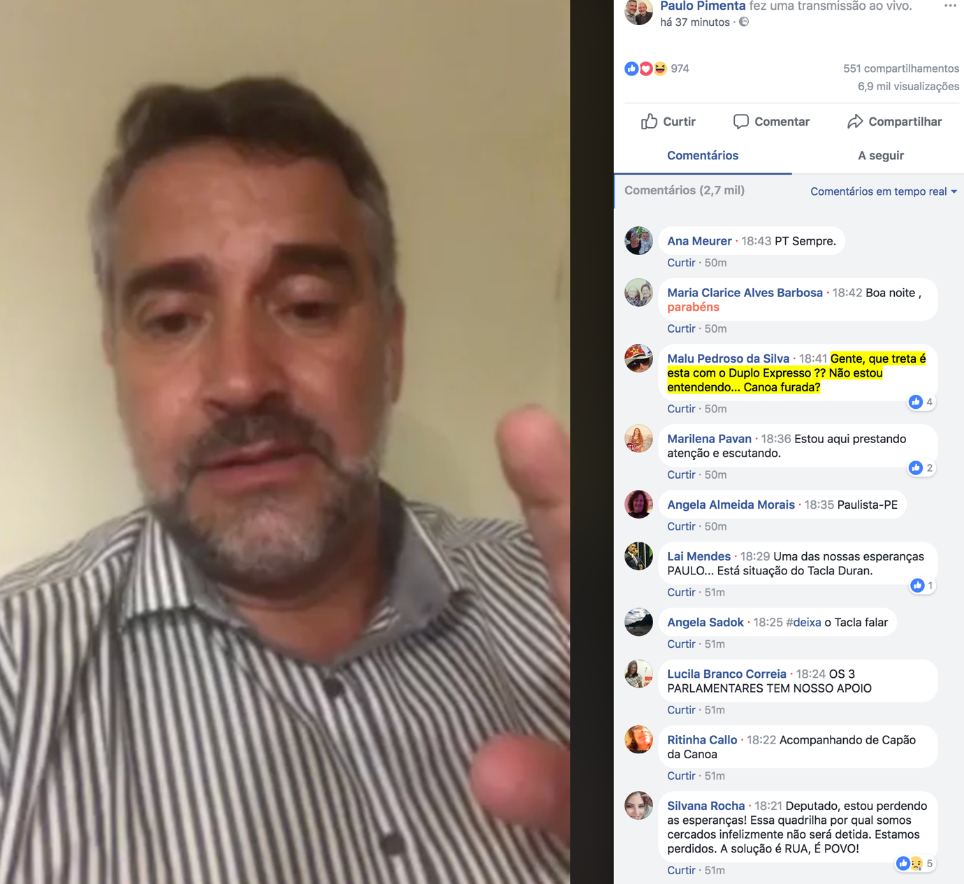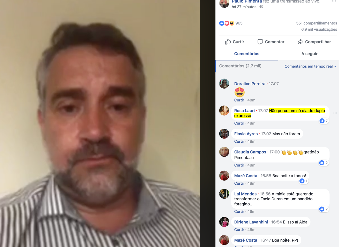 P.S.: o tiro que sai pela culatra. O cara chama uma “live” para detonar o Duplo Expresso… mas…