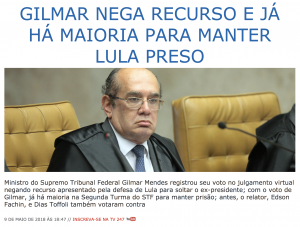 OBS: Lula diz: “os meus advogados sabem que eu sou inocente”. Curiosa tal afirmação, não é mesmo? Será que o Presidente se refere a advogados em sentido lato? Abarcando, talvez, o tal “PT judicial” (apud Luiz Moreira)? Aquele que o induziu a erro em São Bernardo? Aquele que recomendou que o Presidente abandonasse a sua candidatura, prometendo (falsamente), pela milésima vez, facilidades no STF?