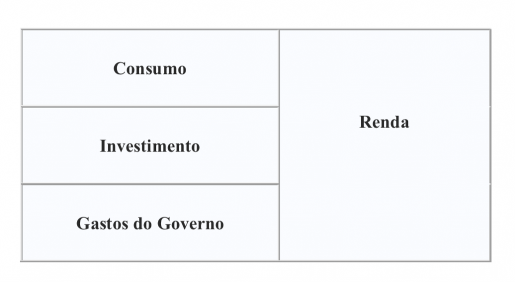 Resumidamente a Demanda Efetiva-DE era composta, preponderantemente, pelo consumo, o investimento e mais o gasto líquido do governo (déficit público): C+I+G = Y.