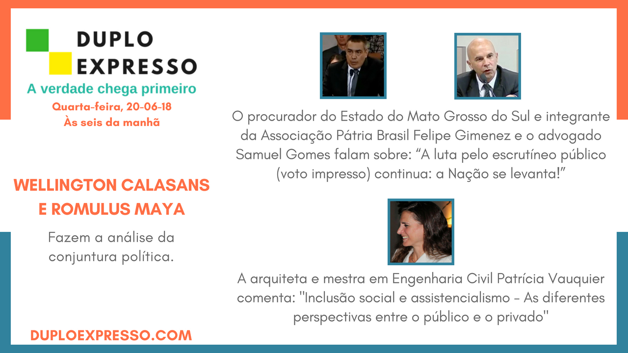 Para assistir, curtir as páginas e compartilhar, temos no Programa Duplo Expresso desta quarta-feira, 20/06, os seguintes destaques:
